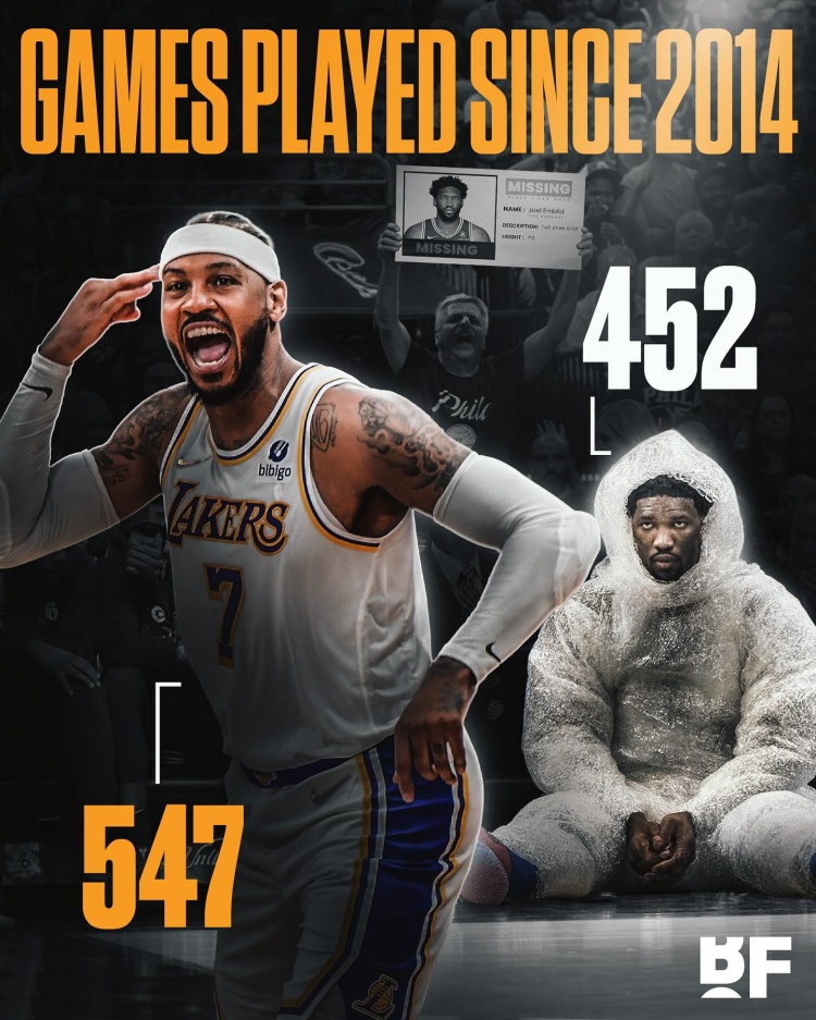 jiuyou.com-杀人诛心!美媒晒图:14年至今出场数安东尼比恩比德多近百场